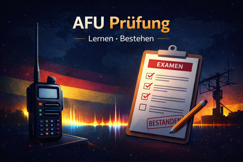 Die Prüfung ist eine Multiple-Choice-Prüfung auf Basis eines offiziellen Fragenkatalogs der BNetzA. Dieser Katalog umfasst alle Themen, die für den Amateurfunk relevant sind – von Technik und Elektrotechnik über Funkbetrieb und Abkürzungen bis hin zu gesetzlichen Grundlagen.
