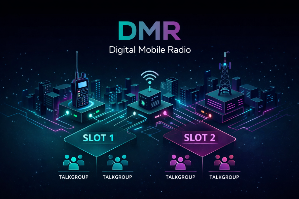 DMR ist ein offener, von der europäischen Standardisierungsorganisation ETSI entwickelter Digitalfunkstandard für nichtöffentliche Funknetze. Die Idee dahinter: ein vergleichsweise einfacher, günstiger und herstellerübergreifend kompatibler Standard, der auf den bestehenden 12,5-kHz-Kanälen laufen kann – aber effizienter und mit mehr Features als analoges FM.